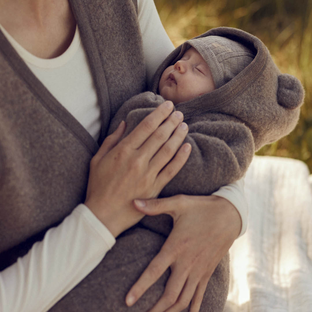 Diese Erstlingsmütze eignet sich ideal für das Nickerchen im Kinderwagen, da sie dünn und leicht ist und deinem Kind eine komfortable Wärme ohne Überhitzung bietet. Die Merinowolle reguliert die Körpertemperatur und hält das Baby trocken und warm, da sie Feuchtigkeit vom Körper ableitet.