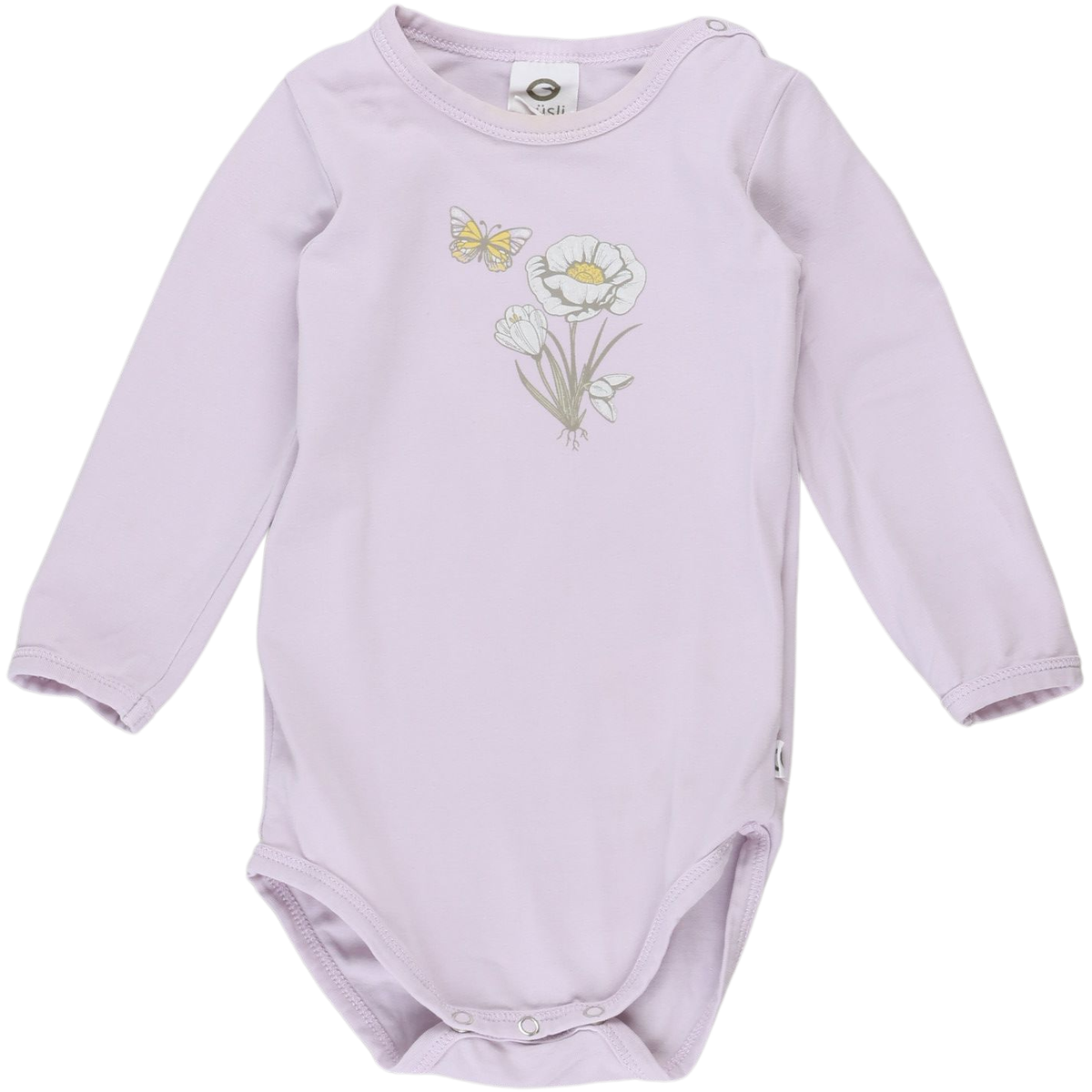 Dieser entzückende Langarmbody besticht durch seine zarte Rosa-Farbe, die an eine wunderschöne Blumenwiese erinnert. Auf der Vorderseite befindet sich ein bezauberndes Blumenmuster mit einem weißen Krokus, der von einem verspielten Schmetterling begleitet wird.