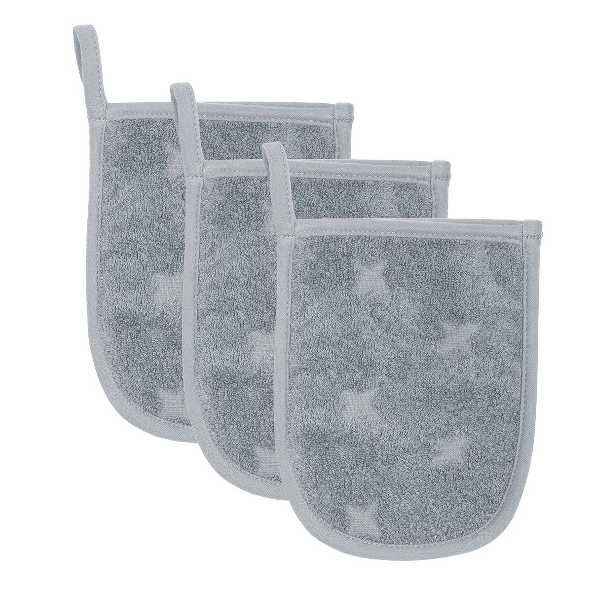 Unser praktisches 3er-Pack Waschhandschuhe ist perfekt für die sanfte Babyhygiene geeignet. Die Handschuhe bestehen aus hochwertiger Biobaumwolle und sind mit einem schönen Kreuzstrukturmuster versehen. Die weiche Frotteequalität fühlt sich angenehm auf der Haut an und eignet sich auch hervorragend als Geschenk. Jeder Waschhandschuh verfügt über eine kleine Schlaufe zum Aufhängen und misst 14 cm x 18 cm.