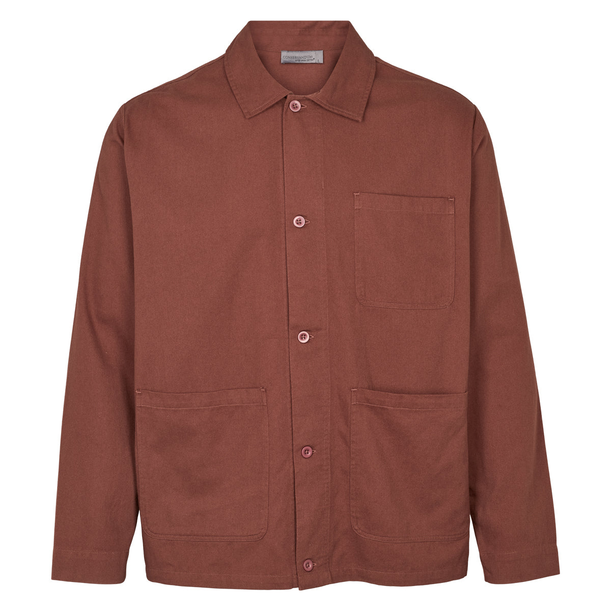 Die klassische Knopfleiste rundet das Design ab und macht die Jacke zu einem vielseitigen Begleiter, der sich sowohl leger als auch etwas eleganter kombinieren lässt. Ob über einem leichten Pullover an kühleren Tagen oder als schicker Begleiter im Übergang – diese Jacke aus 100 % Baumwoll-Twill ist ein Must-have für deinen Kleiderschrank, das Komfort und Stil auf natürliche Weise vereint.