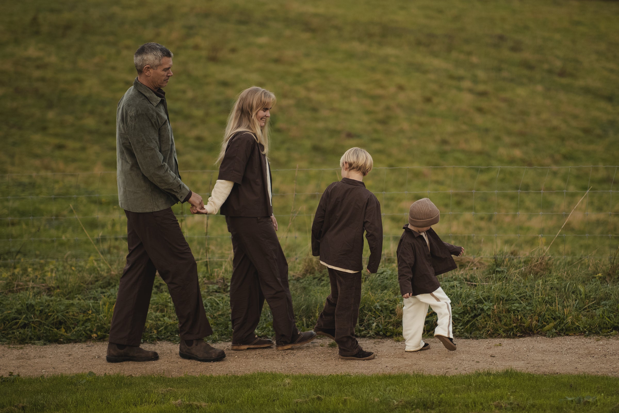 Setze auf ruhige Farben und klassische Schnitte, die für die ganze Familie passen. So könnt ihr euch zum Beispiel in unseren wunderschönen Wollwesten für Mama und Baby abstimmen – perfekt für herbstliche Ausflüge, Spaziergänge im Kinderwagen oder gemütliche Tage zu Hause. Passend dazu lassen sich unsere braunen Cordhosen kombinieren, sodass die ganze Familie im Look von Conservandum und Jam Generation auftreten kann. Schafft einen ruhigen, nordischen Ausdruck mit weichen Basics, Leggings, Sweats und Strick in denselben Farbtönen für alle Größen.