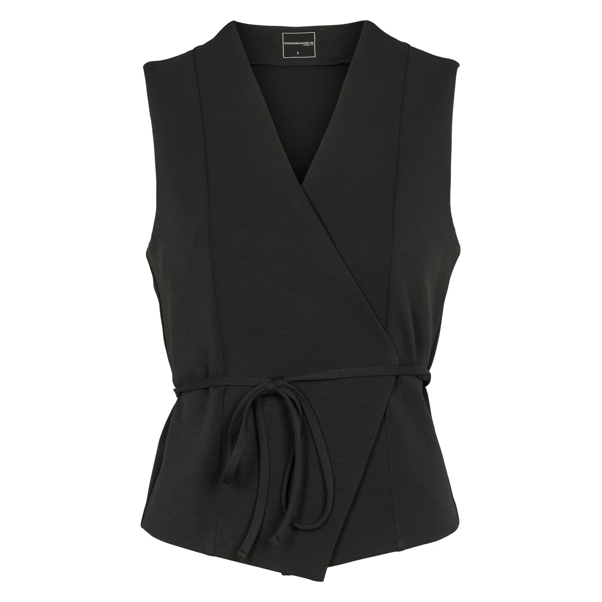 Diese wunderbar bequeme Weste mit einem eleganten Bindegürtel in der Taille ist das perfekte Kleidungsstück für alle, die Komfort und Stil in einem lieben. Gefertigt aus weichem Interlock-Gewebe, einer geschmeidigen Mischung aus Baumwolle, Polyester und Elastan, fühlt sich die Weste herrlich angenehm auf der Haut an und schmiegt sich sanft an deinen Körper.