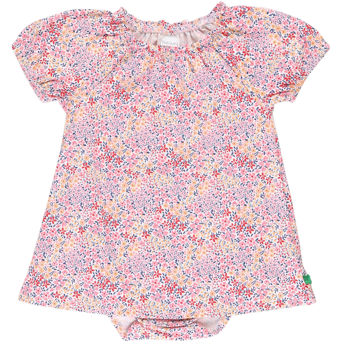 Der weiche Single Jersey Stoff sorgt für ein angenehmes Tragegefühl und passt sich den Bewegungen deines Babys optimal an. Das Elasthan im Stoff garantiert, dass das Kleid seine Form behält und nicht ausleiert. Die Druckknöpfe am unteren Bereich erleichtern das An- und Ausziehen und machen das Kleid besonders praktisch im Alltag. Das bunte Blumenmuster verleiht dem Kleid eine fröhliche Optik, ideal für besondere Anlässe.