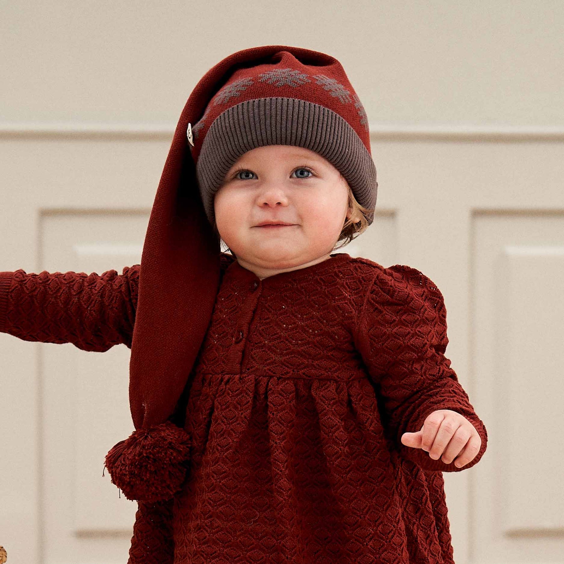 Dieses besondere Strickkleid aus reiner biologischer Baumwolle ist ein echter Hingucker. Die hochwertige Verarbeitung der besonderen Garne machen dieses Kleid ganz besonders. Der Kragen und die Knopfleiste aus Kokosnussknöpfen lassen es besonders edel wirken. Unsere Strumpfhosen mit Muster sind die perfekte Ergänzung für einen mädchenhaften Look.