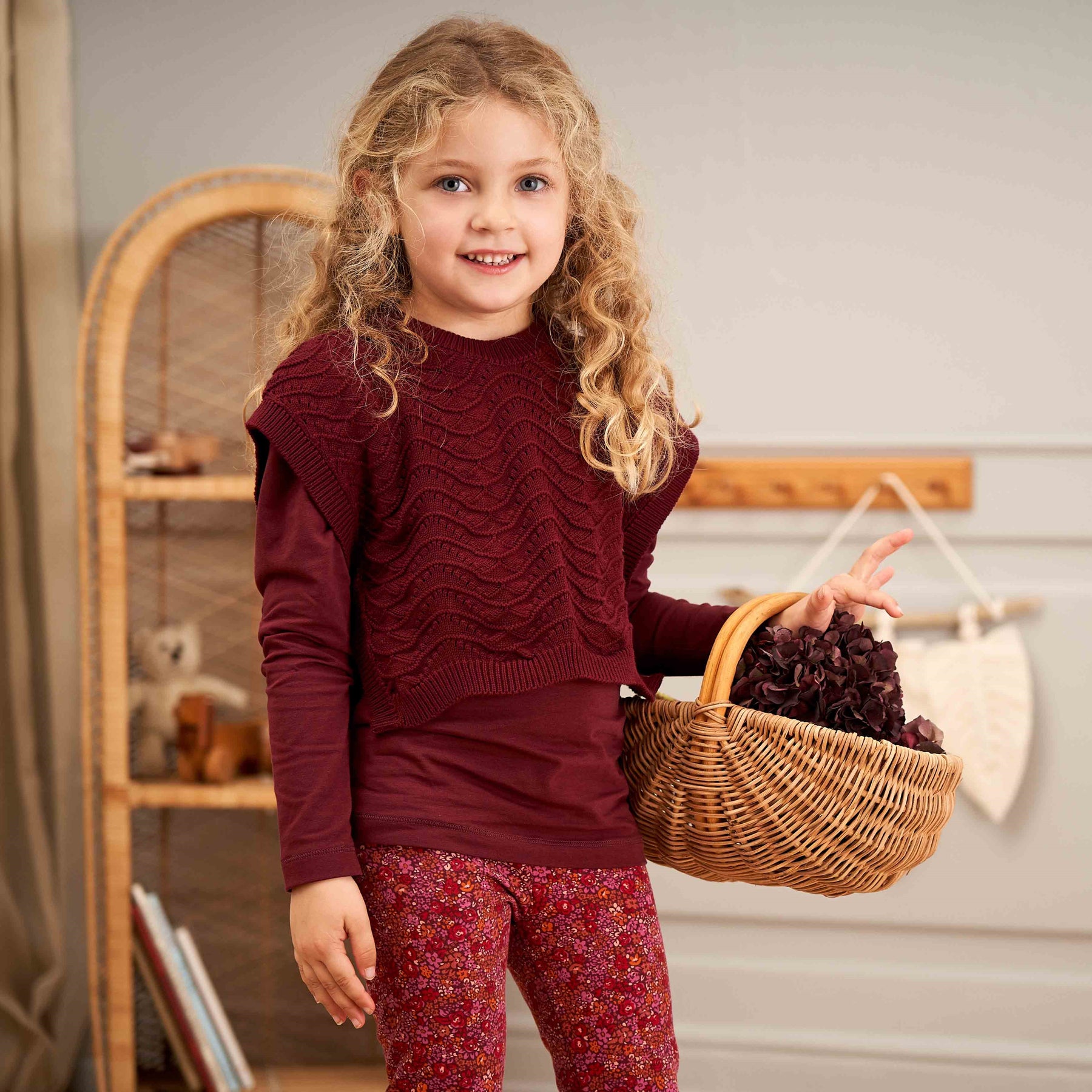 Super süße Strickweste aus einem schönen weichen Baumwollstrick für die Mädchen. Die Weste ist an den Seiten offen und die Weste ist vorne kürzer und hinten länger.
