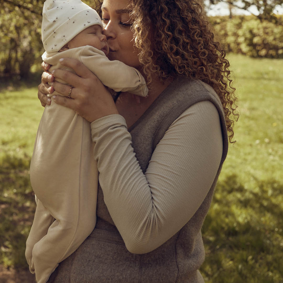 Das weiche Innenfutter mit hübschen braunen Sternen setzt einen zauberhaften Akzent und verleiht dem Strampler einen besonderen Charme. Praktische Druckknöpfe vorne erleichtern das An- und Ausziehen, während die klappbaren Enden an Füßen und Händen zusätzlichen Schutz bieten – so bleiben die kleinen Gliedmaßen immer kuschelig eingehüllt.