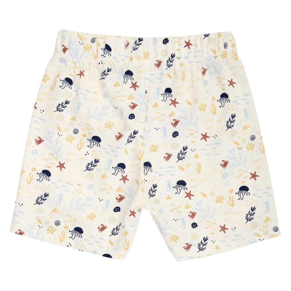 Diese wunderschönen Sommer-Shorts sind voller fröhlicher Meeres-Tiere, die kleine Entdecker*innen begeistern. Der leichte, luftige Stoff aus 100% Baumwolle mit besonderem Slub-Garn fühlt sich angenehm kühl auf der Haut an und ist perfekt für heiße Tage. Der elastische Bund sorgt für einen bequemen Sitz, damit dein kleiner Schatz unbeschwert spielen und toben kann. Das charakteristische, leicht unregelmäßige Garn verleiht den Shorts eine besondere Optik, die sie zu etwas ganz Besonderem macht. Mit 140g/m² sind sie herrlich leicht und begleiten dein Kind durch viele sommerliche Abenteuer.