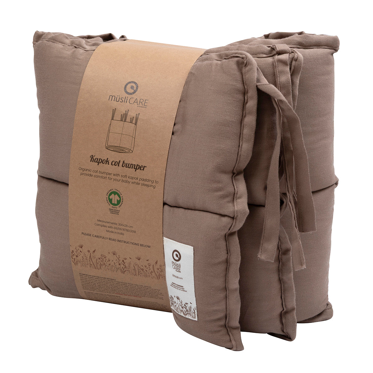 Der Außenstoff besteht aus 100 % satingewebter Baumwolle, die Füllung aus 100 % Kapok.