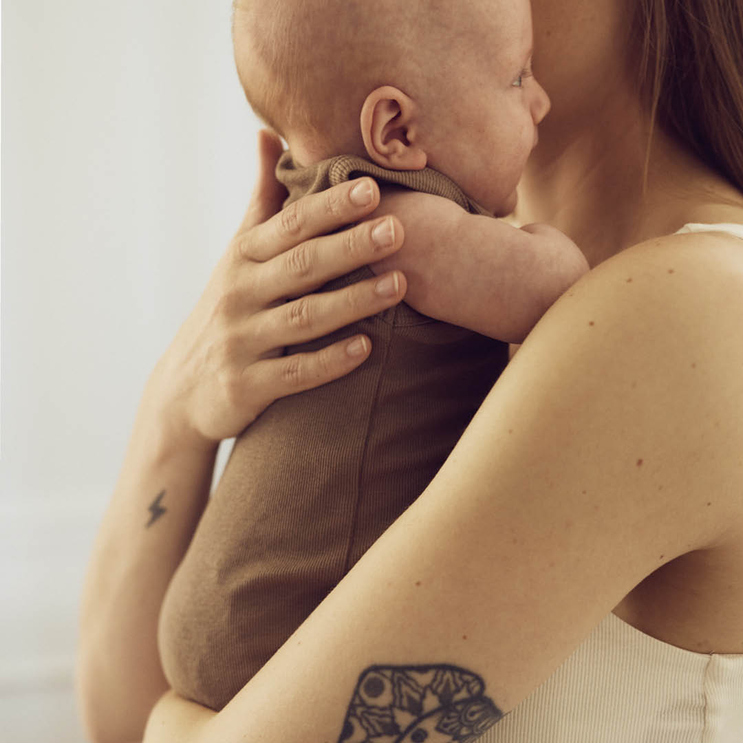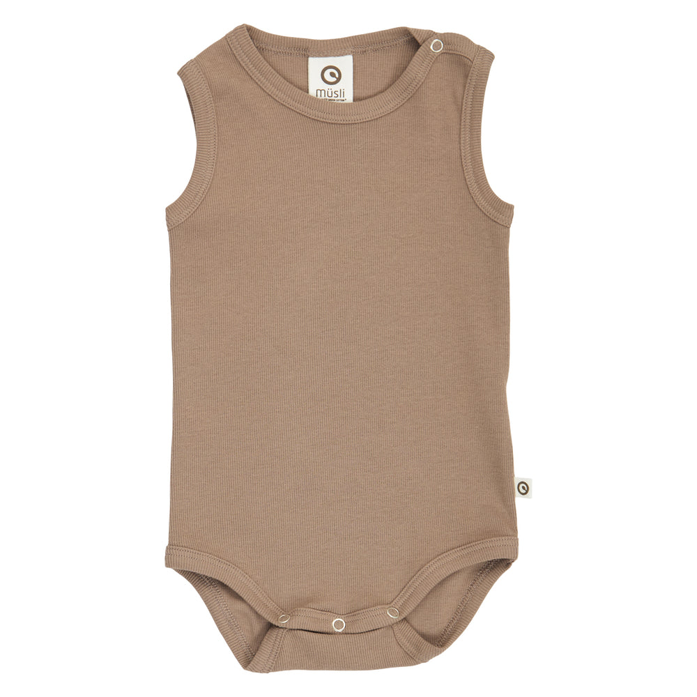 Entdecke den neuen ärmellosen Body unserer Care Kollektion. Der Body lässt sich dank der Druckknöpfe an der Schulter öffnen und leicht an und ausziehen.