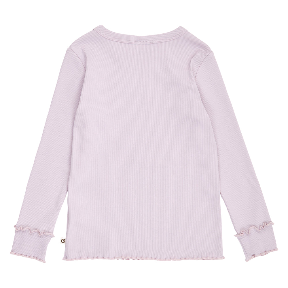Dieses super niedliche und zugleich schlichte Langarmshirt aus unserer CozyMe Kollektion besticht durch seine weiche und elastische 2x2-Baumwollripp-Qualität, die sich angenehm sanft an die Haut anschmiegt und für ein gemütliches Tragegefühl sorgt. Besonders liebevoll sind die feinen Rüschendetails an den Ärmelsäumen, die dem Shirt eine verspielte und feminine Note verleihen – ein zarter Akzent, der das einfache Design charmant abrundet.
