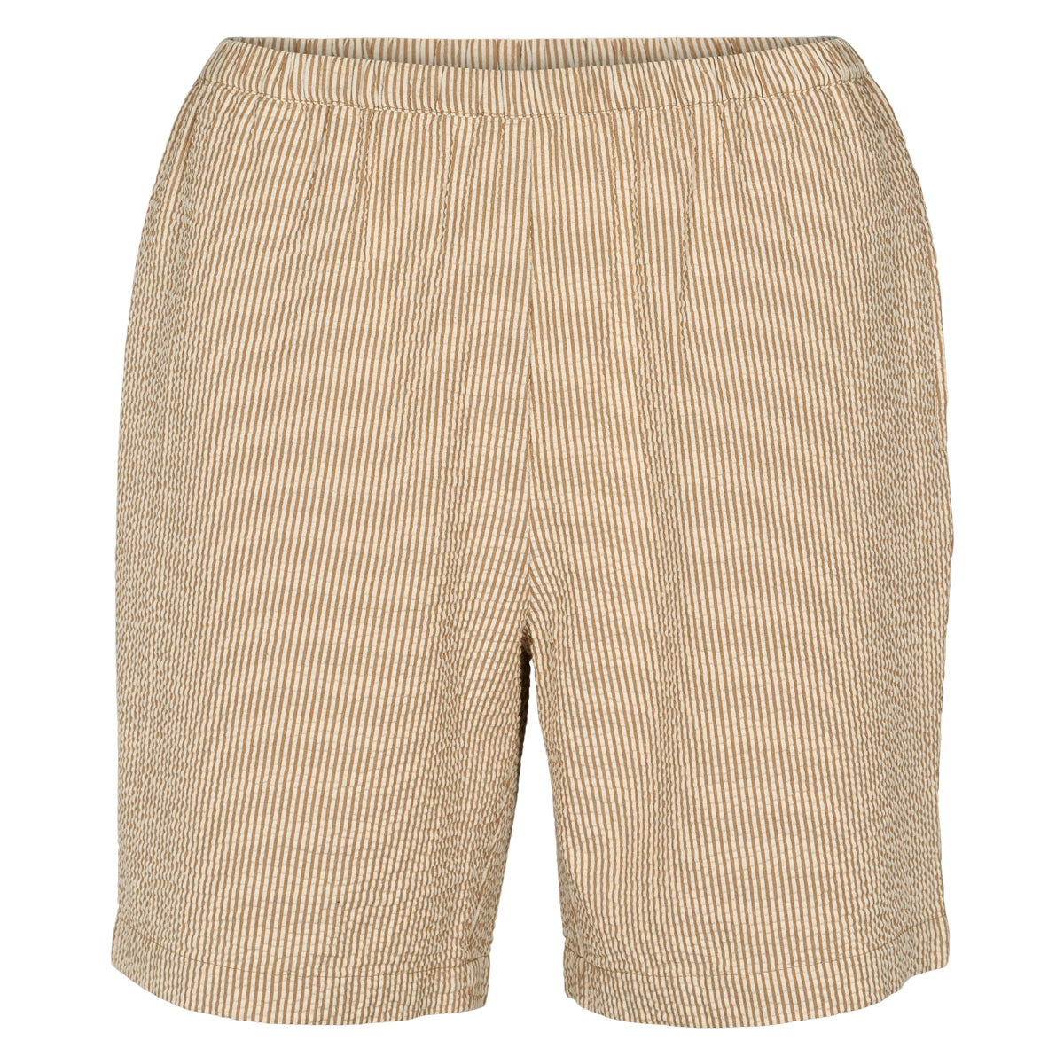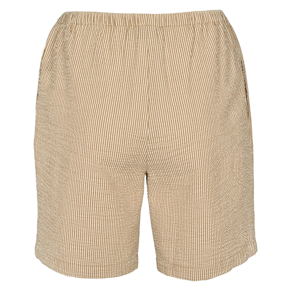 Entdecke diese wunderschönen und besonders leichten Shorts aus gestreifter Baumwoll-Seersucker-Qualität, die nicht nur durch ihr klassisches Design, sondern auch durch hohen Tragekomfort überzeugen. Die Shorts sind mit praktischen seitlichen Taschen ausgestattet und verfügen über einen elastischen Bund, der sich perfekt an deine Taille anschmiegt und für optimalen Sitz sorgt. Das charakteristische Seersucker-Material mit seiner leicht gekreppten Oberfläche sorgt dafür, dass die Shorts besonders atmungsaktiv und luftig sind – ideal für warme Sommertage oder entspannte Freizeitaktivitäten. Ob am Strand, beim Stadtbummel oder einfach zu Hause – diese Shorts sind dein verlässlicher Begleiter für ein angenehmes Tragegefühl. Gefertigt aus 100 % hochwertiger Baumwolle mit einem angenehmen Stoffgewicht von 100 g/m².