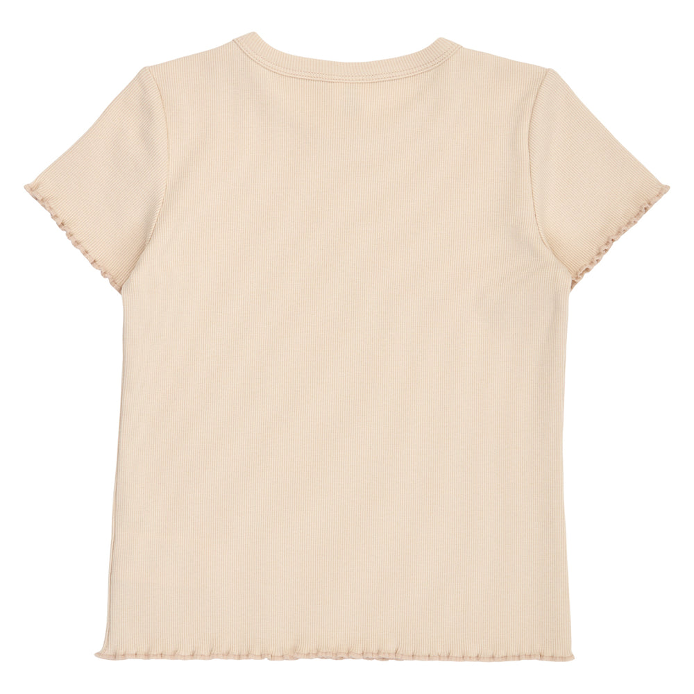 Entdecke das charmante Basic-T-Shirt, das mit liebevollen Details für einen verspielten Look sorgt. Feine Rüschenabschlüsse an den Ärmeln und am Saum verleihen dem Shirt eine zarte, kindgerechte Note, die jedes Outfit besonders macht. Das T-Shirt besteht aus weichem, dehnbarem 2x2 Baumwoll-Ripp mit Elasthan und 270 g/m², was für ein angenehmes Tragegefühl und optimale Bewegungsfreiheit sorgt. Ob beim Spielen, in der Schule oder in der Freizeit – dieses T-Shirt verbindet Komfort und Stil und wird schnell zum Lieblingsstück im Kleiderschrank.